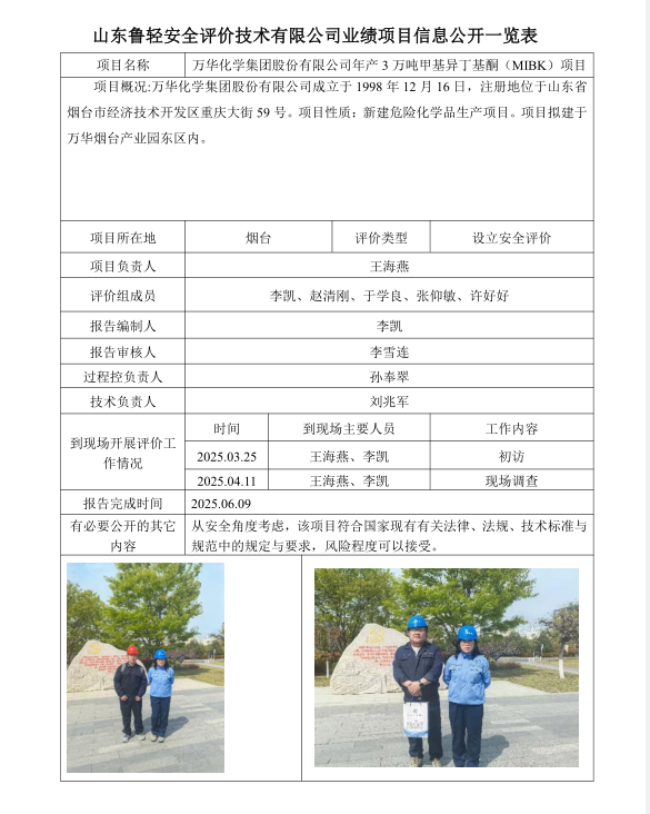 万华化学集团股份有限公司年产 3 万吨甲基异丁基酮(MIBK)项目