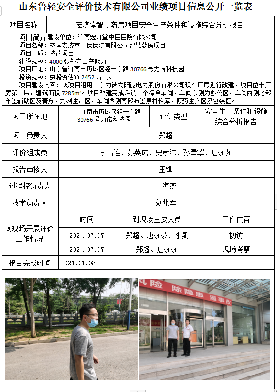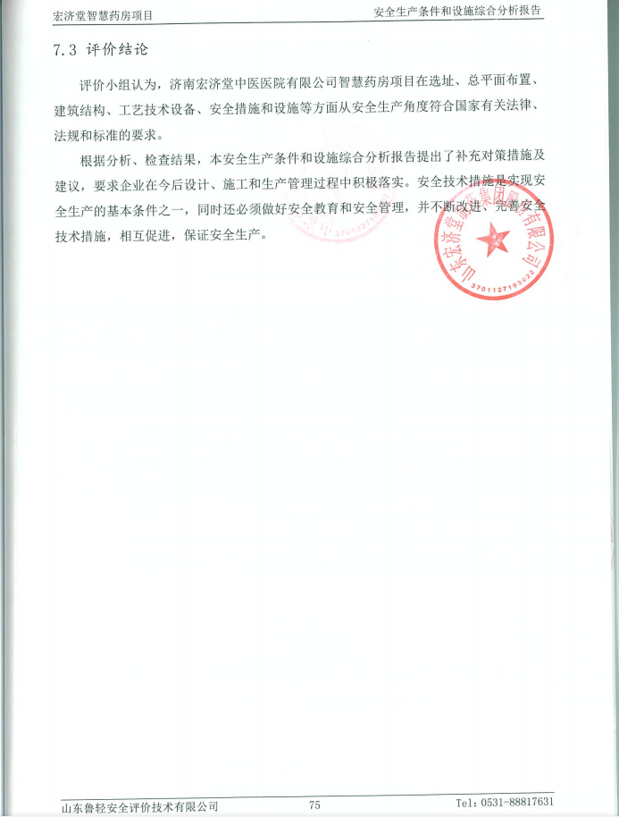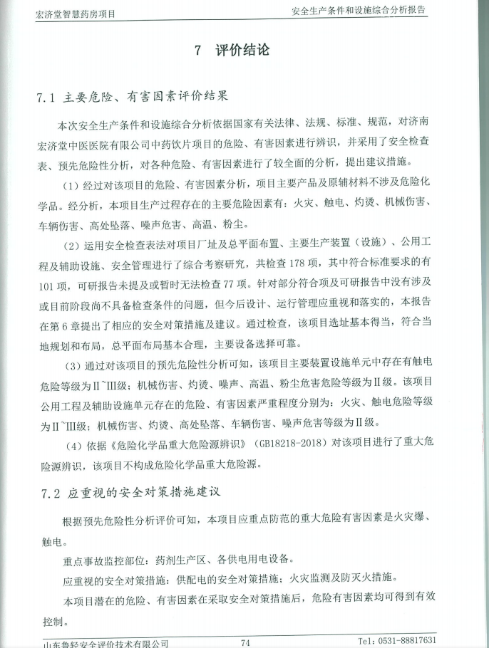 宏济堂智慧药房项目安全生产条件和设施综合分析报告