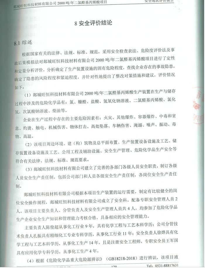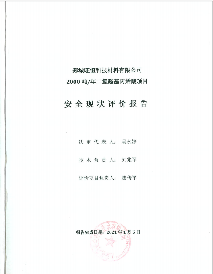 郯城旺恒科技材料有限公司2000吨/年二氯醛基丙烯酸项目