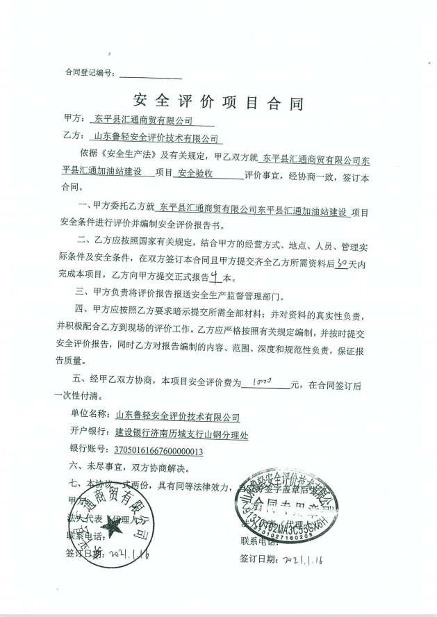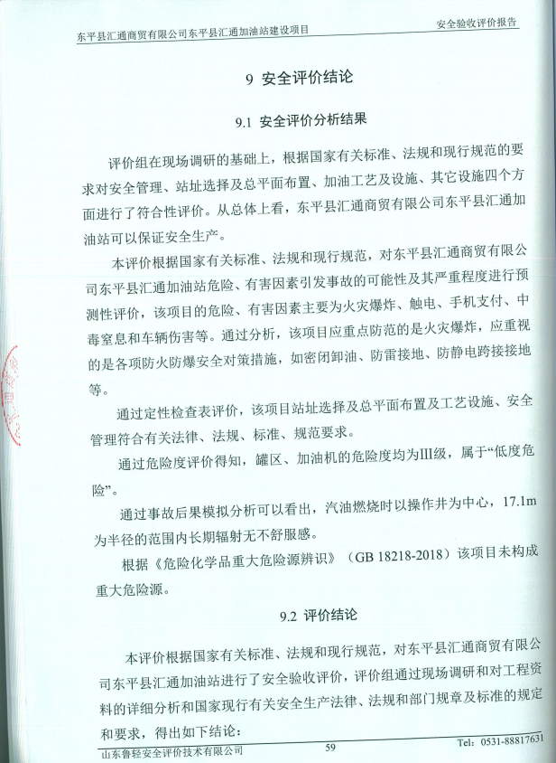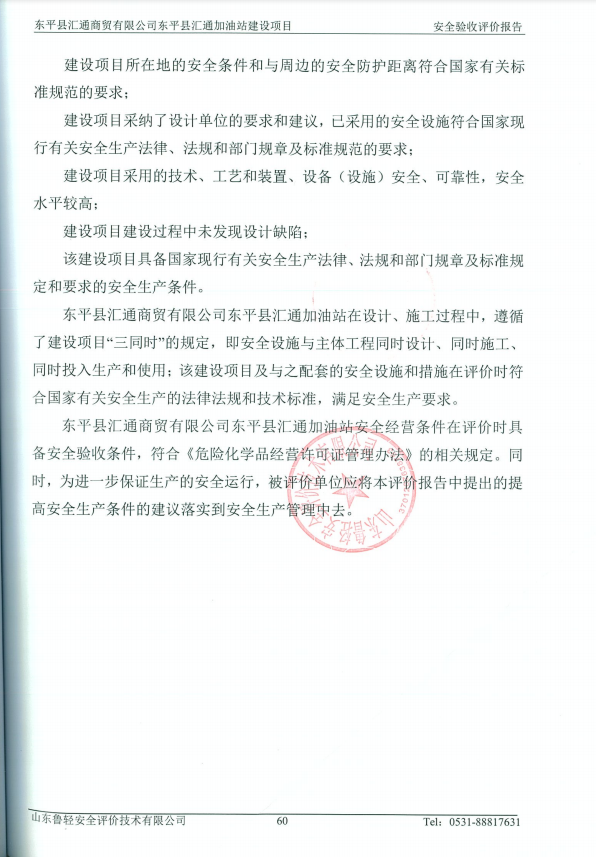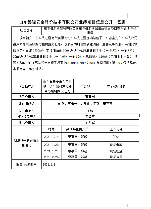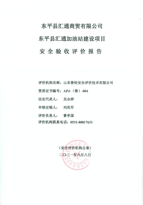 东平县汇通商贸有限公司东平县汇通加油站建设项目安全验收评价报告