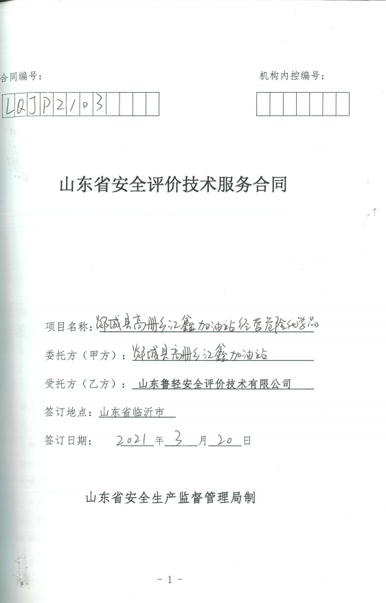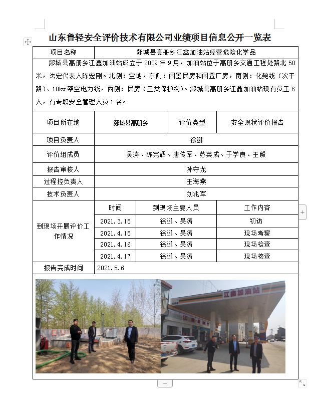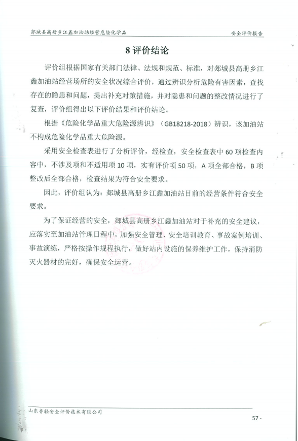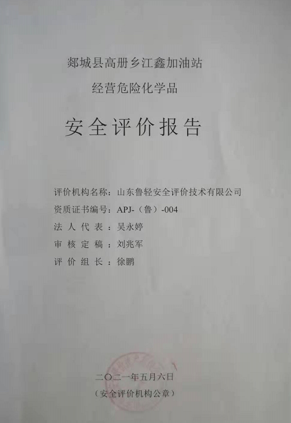 郯城县高册乡江鑫加油站经营危险化学品安全现状评价报告