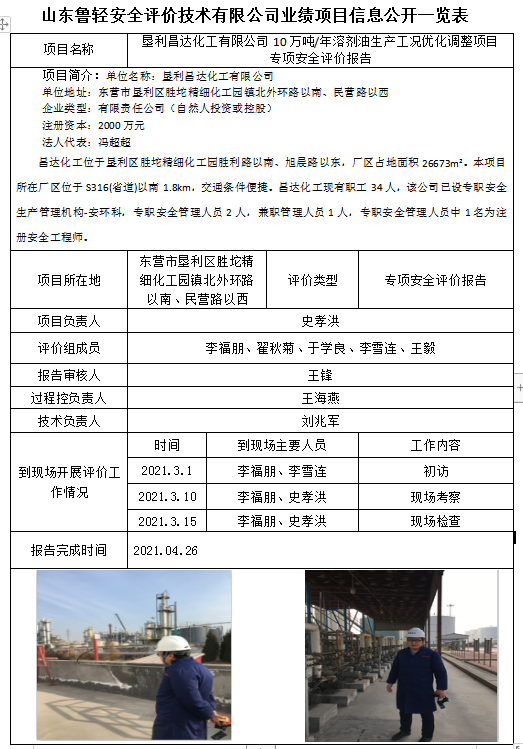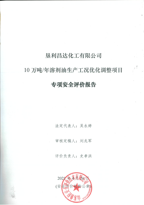 垦利昌达化工有限公司10万吨/年溶剂油生产工况优化调整项目