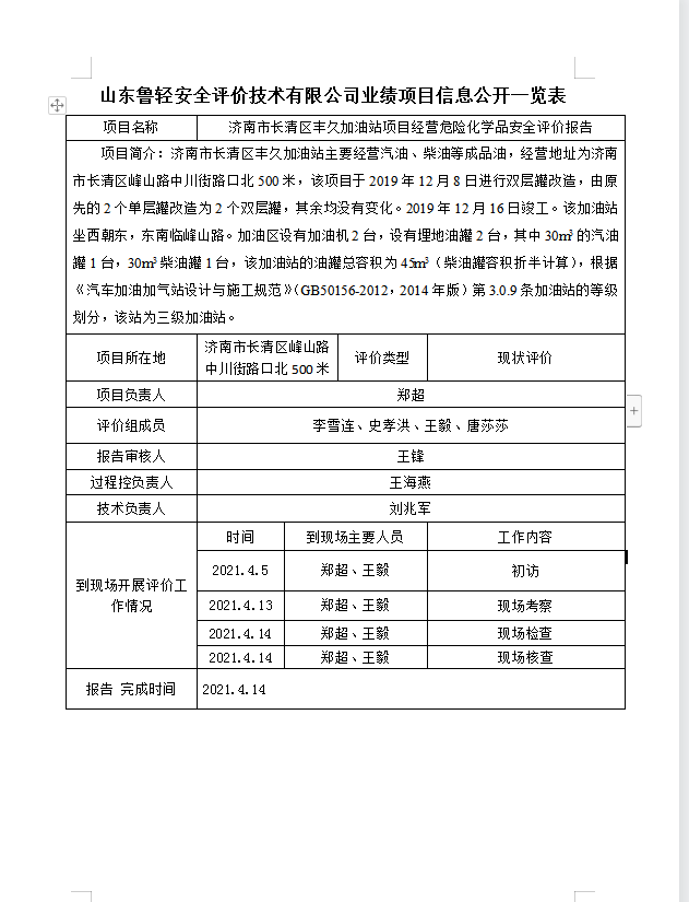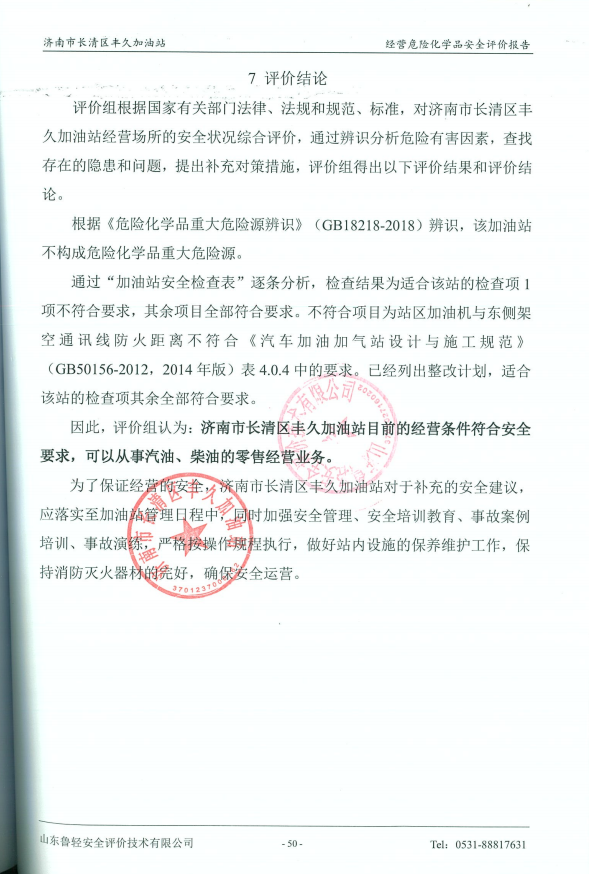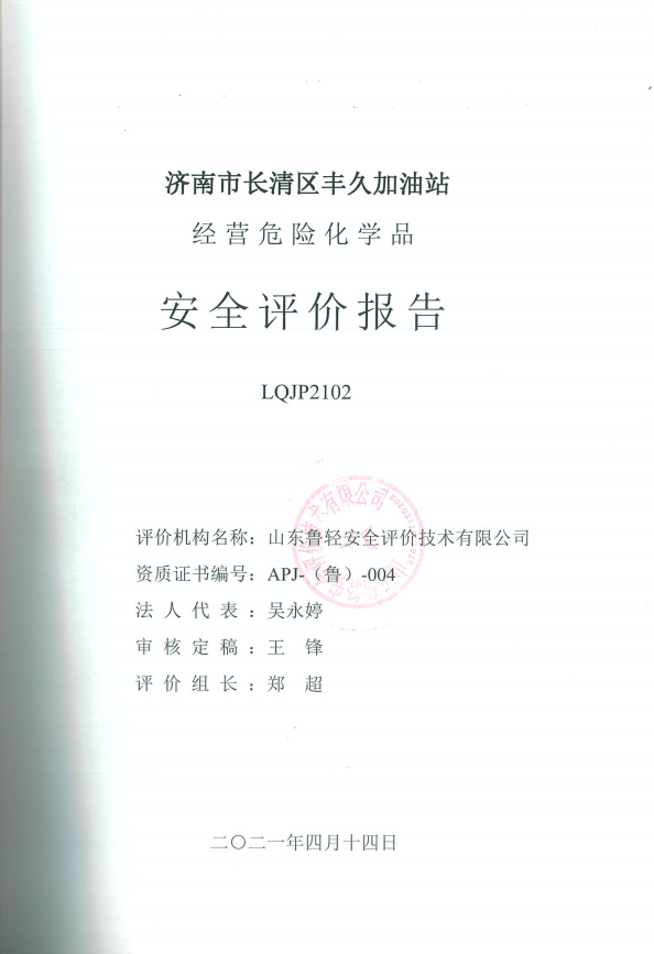 济南市长清区丰久加油站项目经营危险化学品安全评价报告