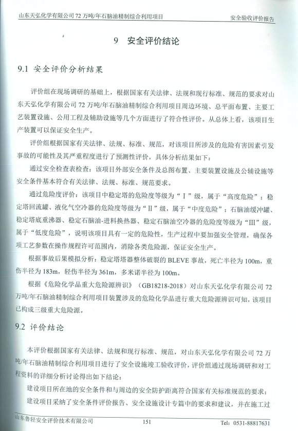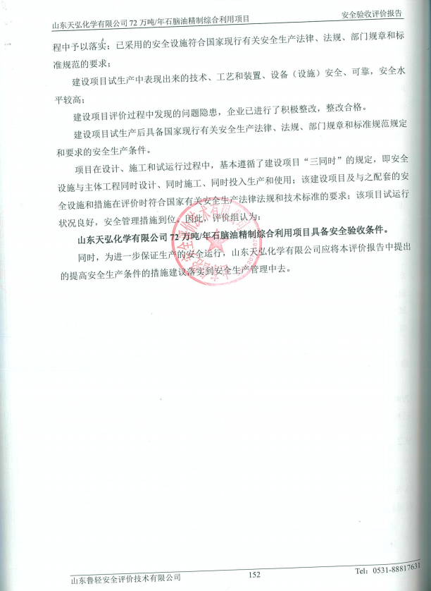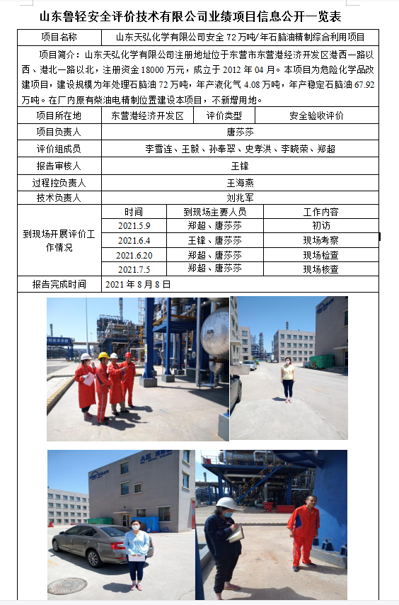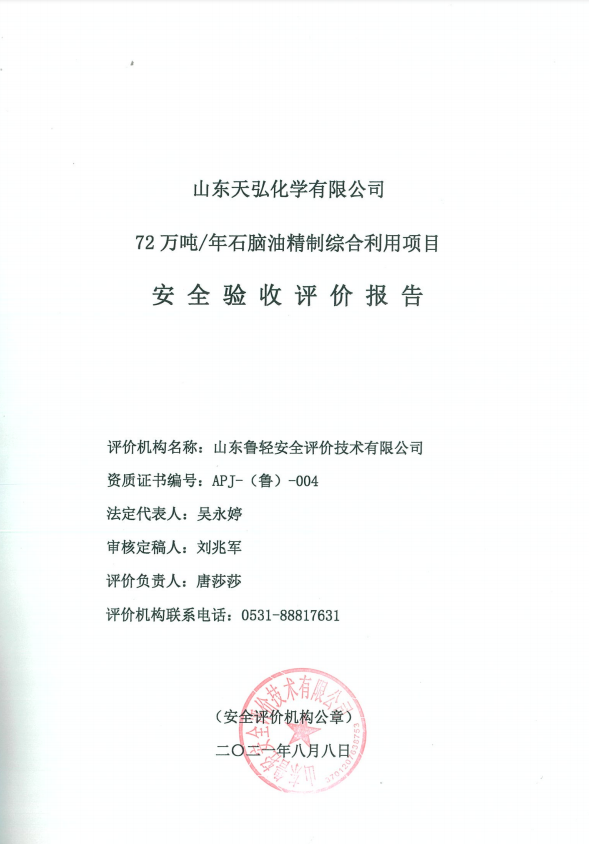 山东天弘化学有限公司安全72万吨/年石脑油精制综合利用项目
