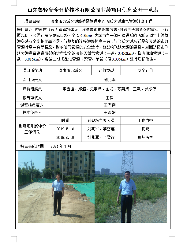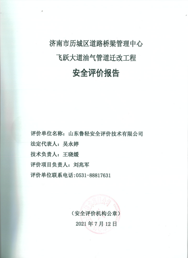 济南市历城区道路桥梁管理中心飞跃大道油气管道迁改工程