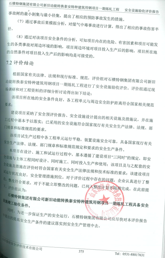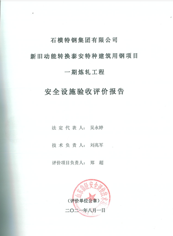 石横特钢集团有限公司新旧动能转换泰安特种建筑用钢项目一期炼轧工程