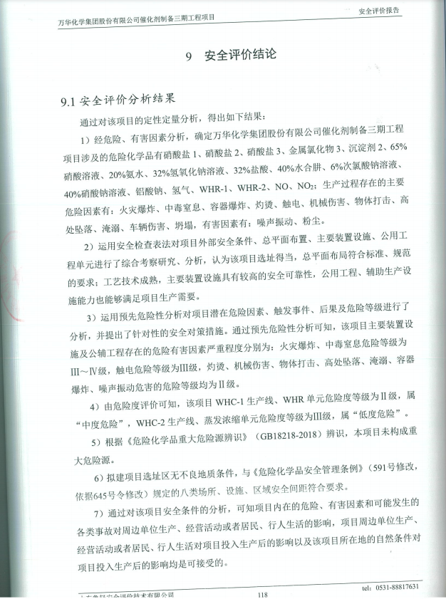万华化学集团股份有限公司催化剂制备三期工程项目