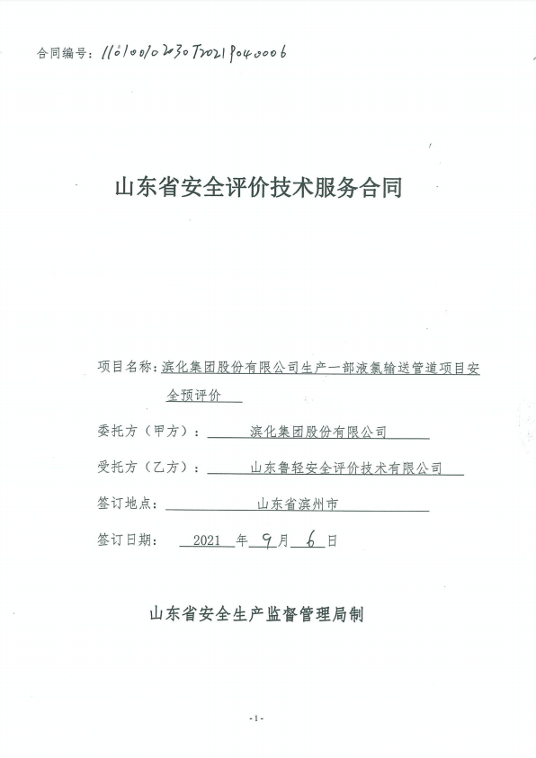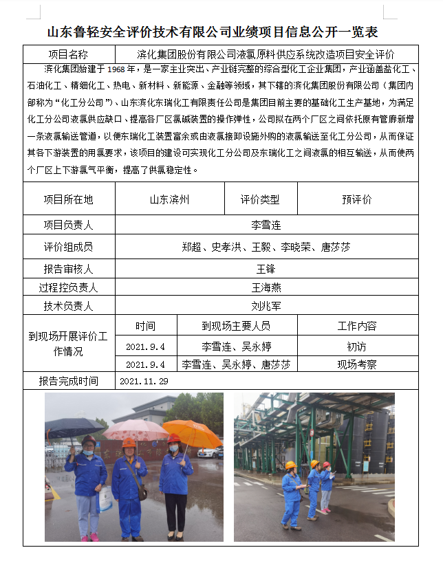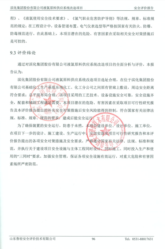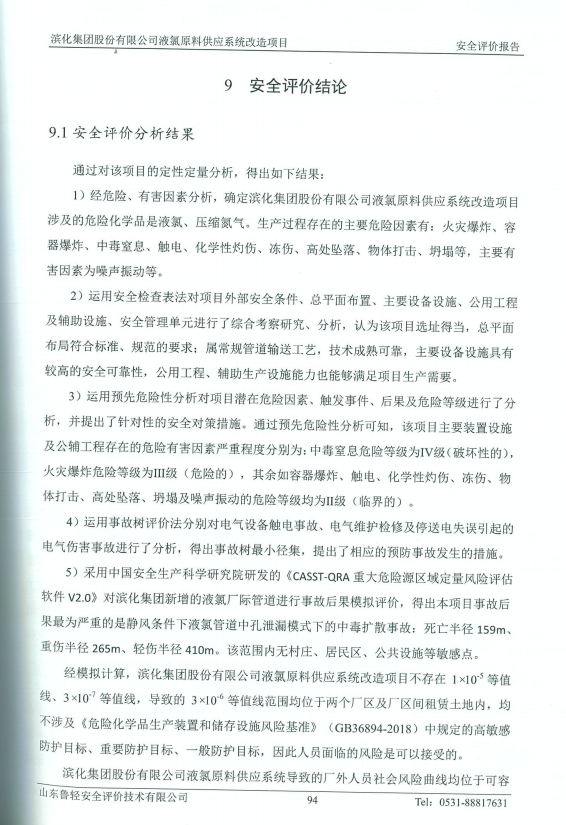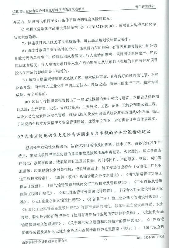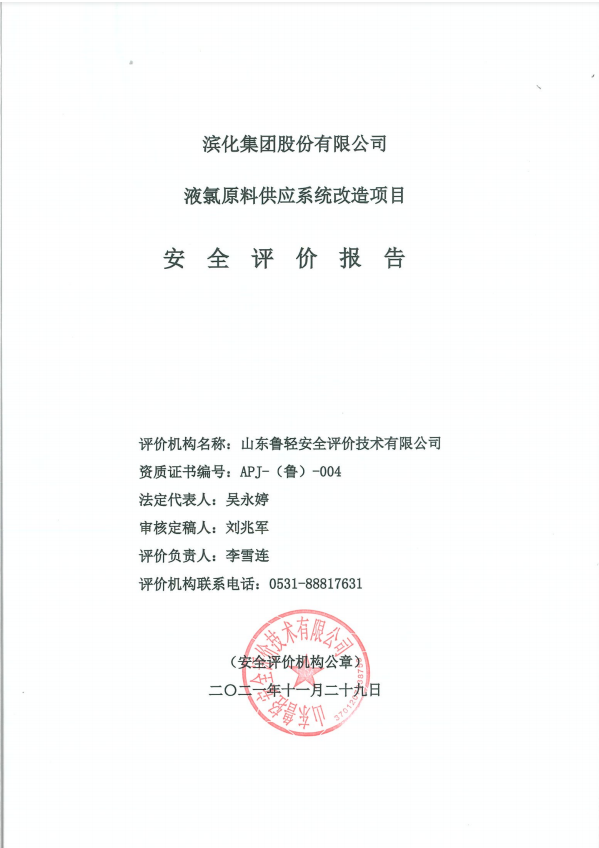 滨化集团股份有限公司液氯原料供应系统改造项目安全评价