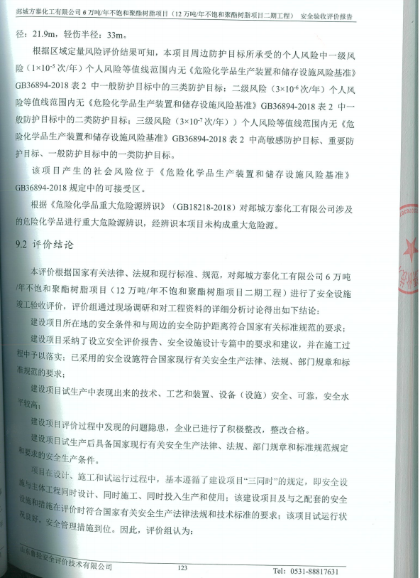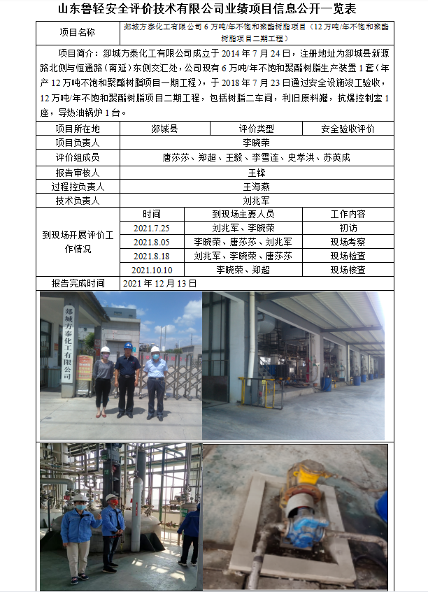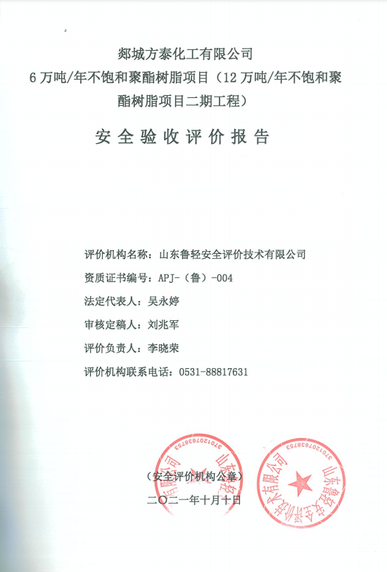 郯城方泰化工有限公司6万吨/年不饱和聚酯树脂项目(12万吨/年不饱和聚酯树脂项目二期工程)