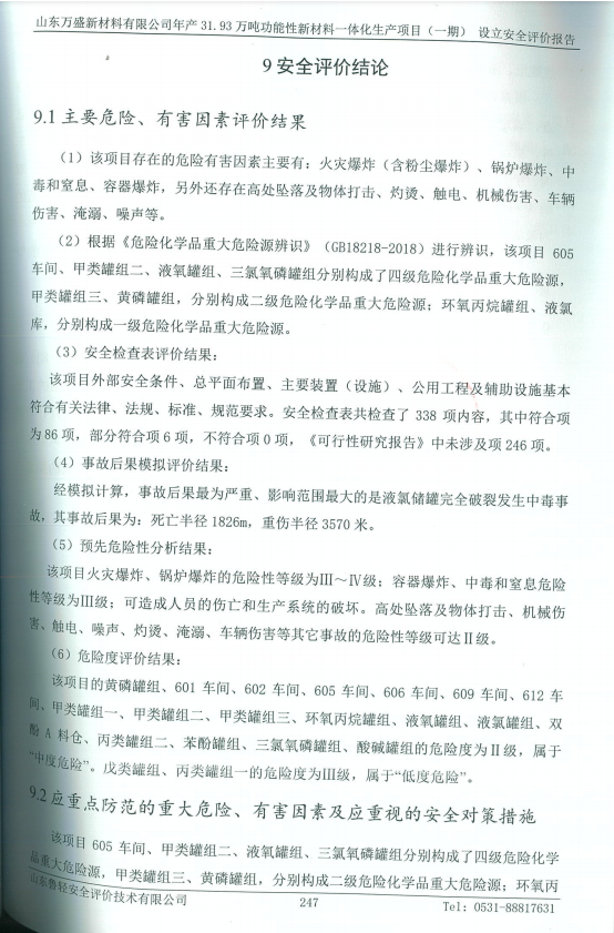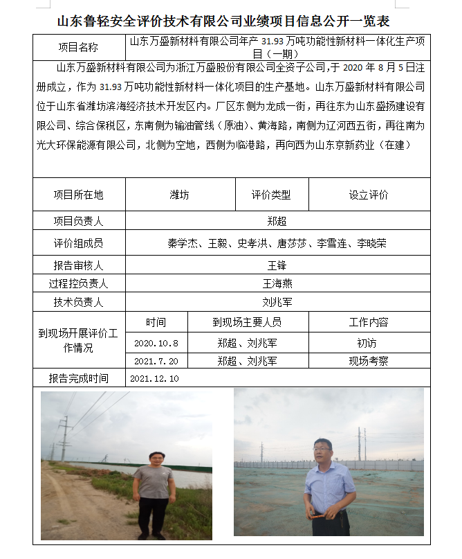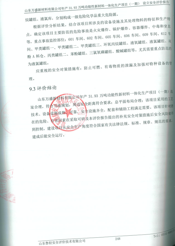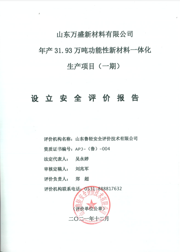 山东万盛新材料有限公司年产31.93万吨功能性新材料一体化生产项目(一期)