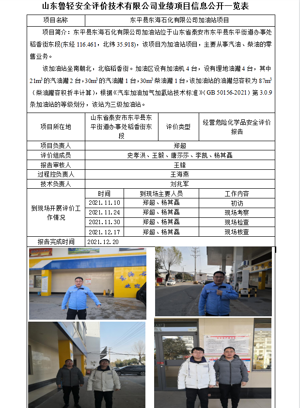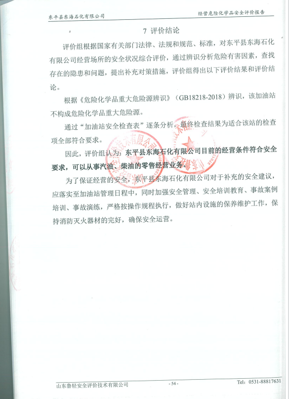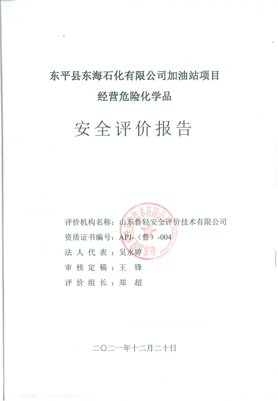 郯城县归昌乡西凡加油站经营危险化学品安全评价报告