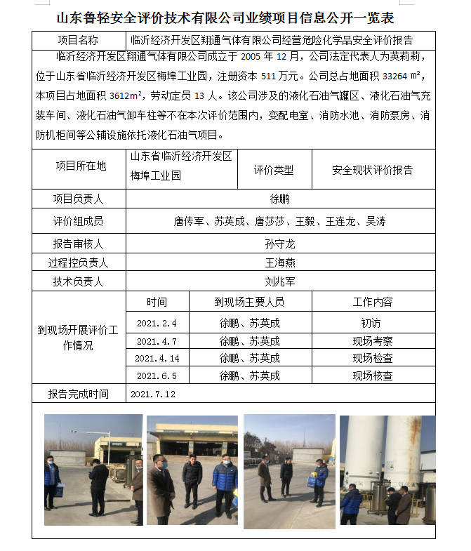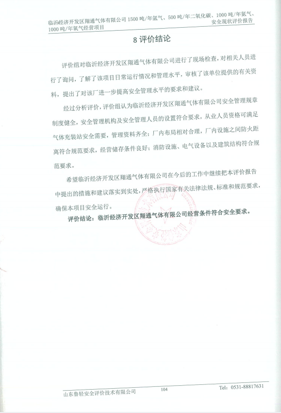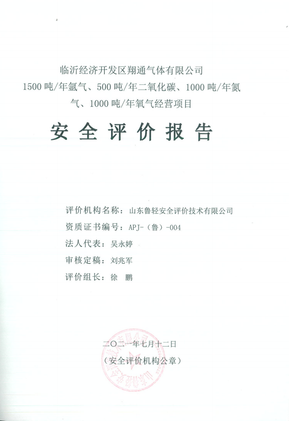 临沂经济开发区翔通气体有限公司经营危险化学品安全评价报告