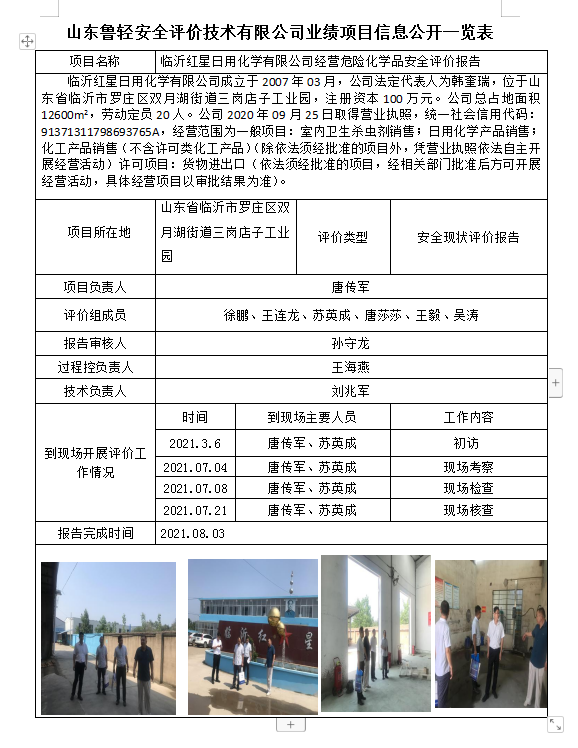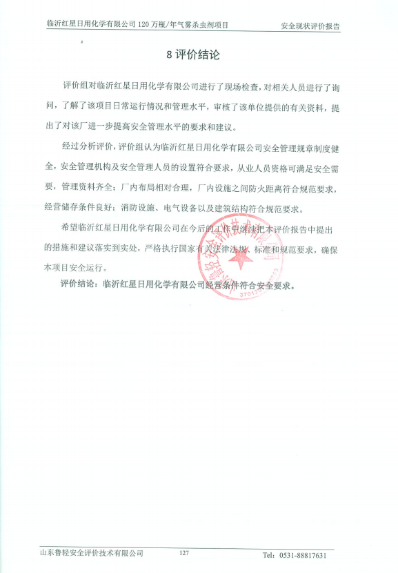 临沂红星日用化学有限公司经营危险化学品安全评价报告