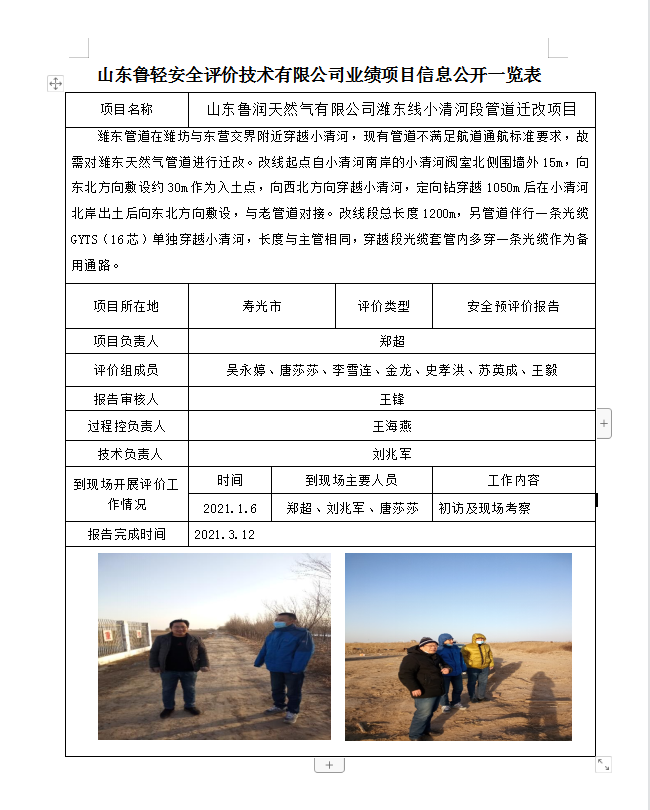 山东鲁润天然气有限公司潍东线小清河段管道迁改项目