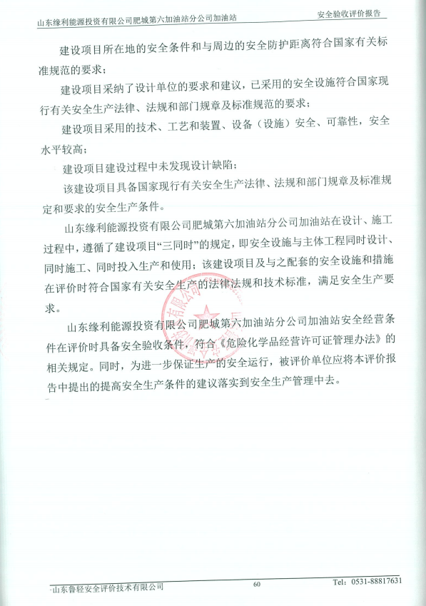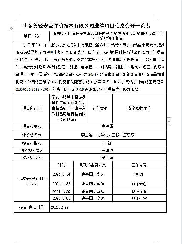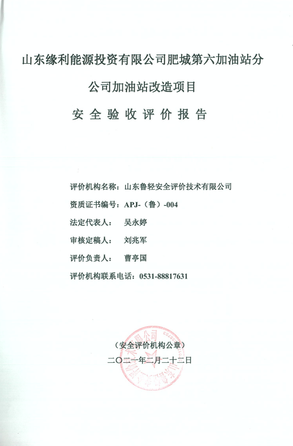 山东缘利能源投资有限公司肥城第六加油站分公司加油站改造项目安全验收评价报告
