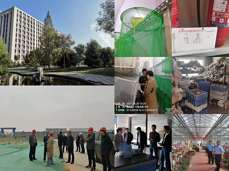 项目组专业技术人员检查了:作物研究所、玉米研究所、资源与环境研究所、植物保护研究所、质量标准研究所、经济作物研究所(棉花研究中心)、农业信息与经济研究所(农业农村遥感应用中心)、蔬菜研究所、农产品加工与营养研究所(辐照中心)、畜牧兽医研究所、家禽研究所、休闲农业研究所(花卉研究所)、农作物种质资源研究所(生物技术研究所)、湿地农业与生态研究所(水稻研究所)、基地管理中心、葡萄研究院、农业机械科学研究院、农药科学研究院、蚕业研究所、花生研究所、果树研究所、种业集团。
